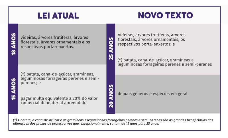 PRAZO DE PROTEÇÃO Outro avanço em direção à UPOV/91 dá-se em relação aos prazos de proteção, que passam a vigorar conforme a tabela no texto.