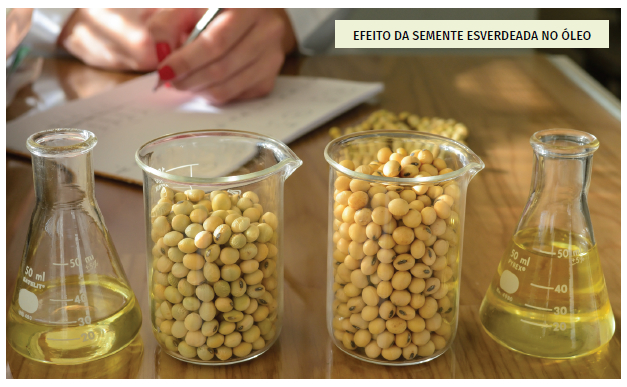 Neste contexto realizou-se um estudo avaliando-se 18 lotes de sementes de soja, que variavam quanto ao percentual de sementes esverdeadas (0 a 74,5%, em média) e à qualidade inicial das sementes. Numa segunda etapa, selecionaram-se oito lotes com maiores percentuais de sementes esverdeadas (17,7 a 74,5%, em média) e, a partir das amostras originais, separaram-se as sementes esverdeadas e as amarelas para avaliação da presença de clorofila residual e a expressão de genes associados à sua retenção. Também foi estudado o período de armazenamento e a preservação da qualidade fisiológica das sementes e a qualidade do óleo comestível extraído
