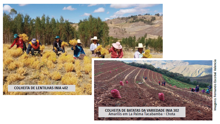 Estrutura institucional e programas de aprimoramento O INIA coordena a maioria dos programas nacionais de melhoramento de plantas, com 25 estações experimentais distribuídas pelo país. As culturas prioritárias incluem arroz, milho amarelo, quinoa, batata, trigo e leguminosas, além de árvores frutíferas, pastagens e espécies florestais.