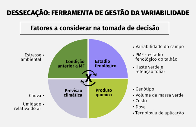 A decisão passa pela adoção da boa técnica agronômica: os responsáveis técnicos pela dessecação precisam “sujar a botina”, prestar atenção nos detalhes, conhecer a variabilidade do seu campo. Atenção especial deve ser dada no acompanhamento do final do ciclo.