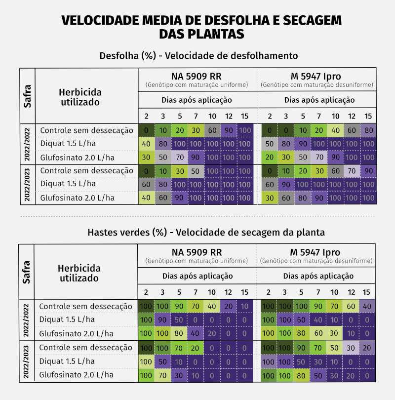 Outro ponto importantíssimo, que define a eficácia dessa prática, é a escolha do herbicida correto. A resposta de genótipos modernos de soja com características de maturação contrastantes a esses diferentes mecanismos herbicidas não foi totalmente elucidada. Além disso, a maioria dos estudos se concentra na qualidade imediata das sementes após a colheita, com pouca ênfase na longevidade, um parâmetro crítico para a indústria de sementes.