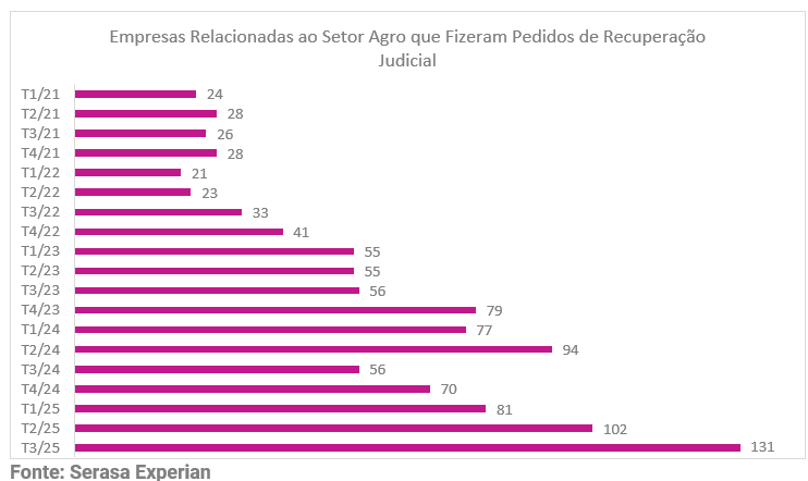 Agronegócio acumula 628 pedidos de recuperação judicial no terceiro trimestre de 2025
